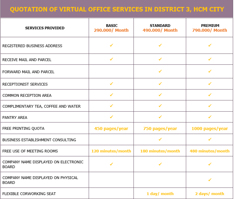 VIRTUAL OFFICE SERVICE PRICING – DISTRICT 3