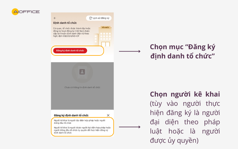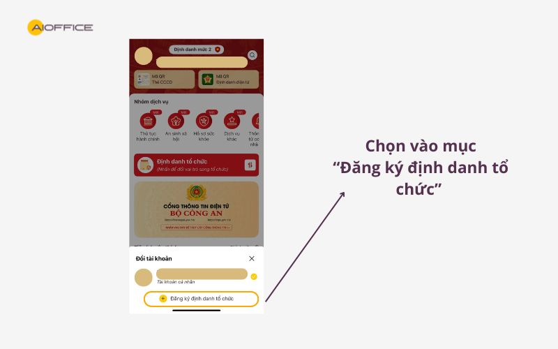 Bước 2: Tại giao diện “Đổi tài khoản”, chọn “Đăng ký định danh tổ chức”