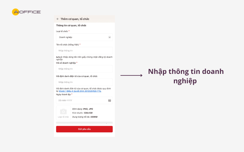 Bước 5: Nhập thông tin của doanh nghiệp, tổ chức gồm: