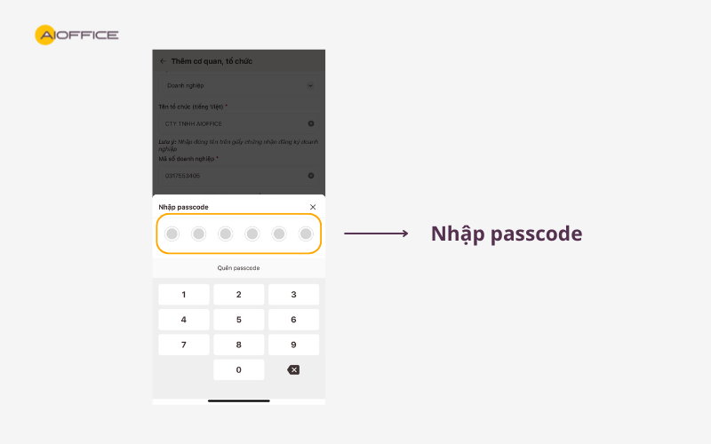 Bước 7: Người đăng ký nhập đúng mật khẩu (passcode) hoặc xác thực bằng vân tay/khuôn mặt tùy vào cài đặt trên điện thoại của bạn